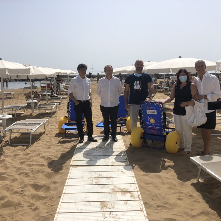 Con queste parole Luca Manica, presidente del Sib, il Sindacato italiano balneari aderente a Confcommercio, ha accolto la donazione di tre carrozzine da mare per disabili, consegnate stamane dal presidente di Akrea, Gianluca Giglio, nel corso di un incontro informale al quale hanno presenziato l’assessore all’Urbanistica del Comune di Crotone, Ilario Sorgiovanni, la consigliera comunale Antonella Passalacqua e il direttore di Confcommercio Calabria centrale, Giovanni Ferrarelli.