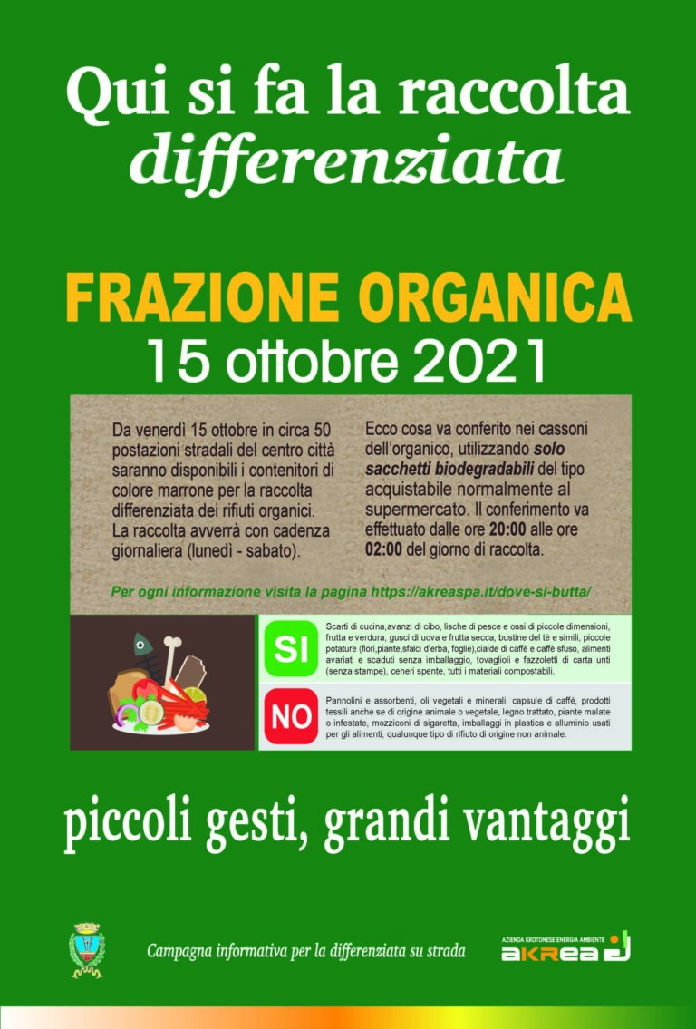 Una maggiore raccolta di rifiuti organici consentirà di aumentare in modo considerevole le percentuali di differenziata, un obiettivo fortemente perseguito da Akrea per allineare la città di Crotone ai parametri indicati nel Piano regionale dei rifiuti.