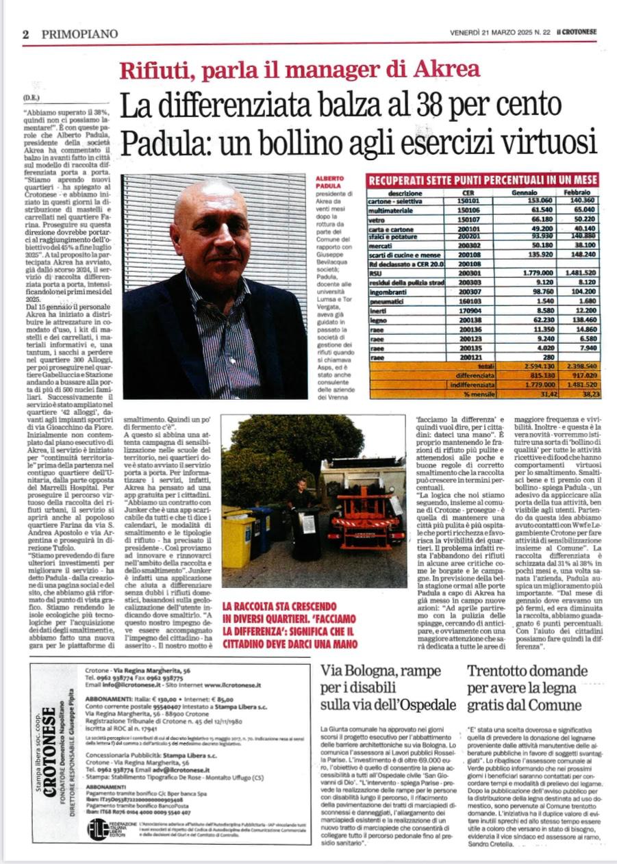 Il manager di Akrea invita a collaborare: “facciamo la differenziata”